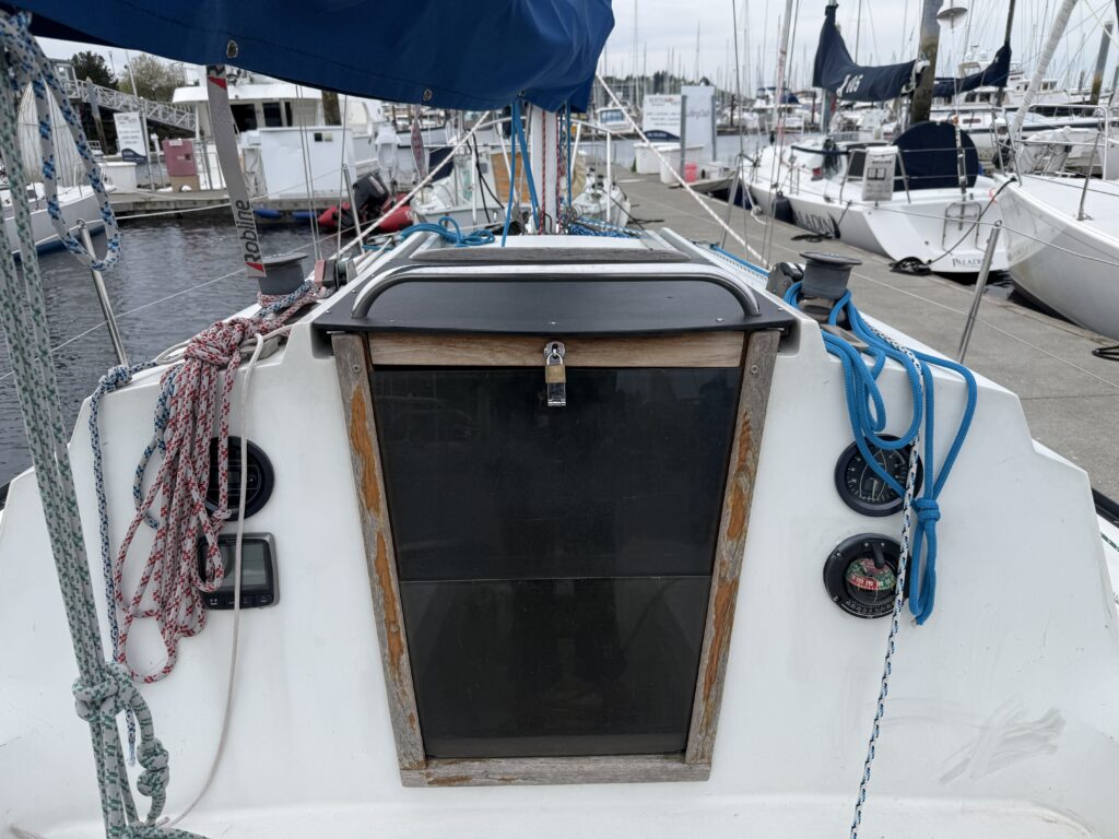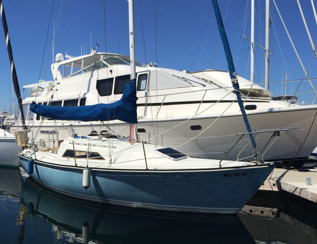 The C&C 27 Mk V is a classic Pacific Northwest boat, a popular cruiser/racer built by C&C Yachts of Ontario, Canada. More than 1,000 C&C 27s were built from 1970 to 1989. The Mk V was designed to be competitive under the MORC rule while remaining approachable and easy to sail. She handles the Sound confidently and is set up to be manageable short-handed.