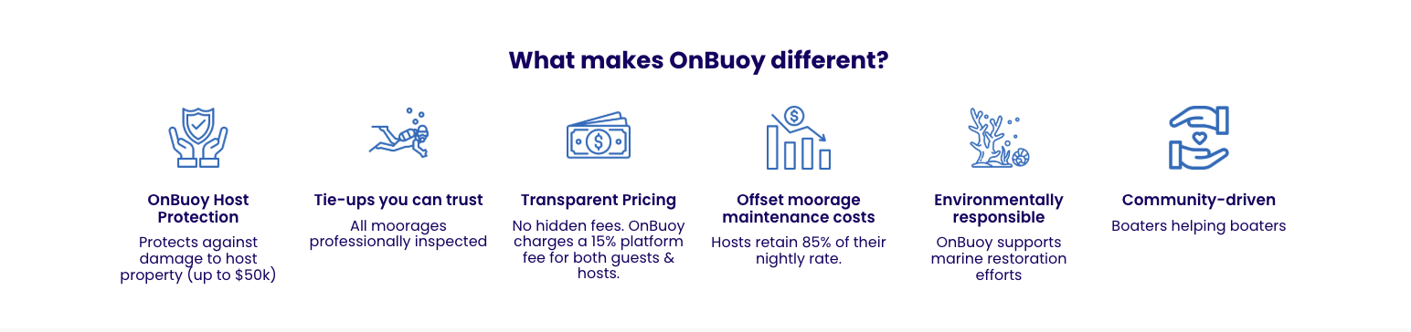 OnBuoy is a digital platform for discovering and booking short-term guest moorage, including docks, slips, and buoys, at locations throughout the Pacific Northwest and beyond. By centralizing details like vessel information and moorage availability, OnBuoy helps make trip planning more efficient, safe, and environmentally responsible.